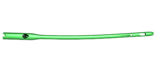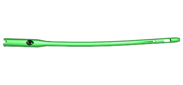 The PFRN Nailing System is an advanced medical device designed for treating certain types of femoral fractures. It is recognized for its anatomical design which ensures a perfect fit within the femur. The system incorporates features such as a 5° M/L angle for easy insertion, a bendable lip to minimize stress on the bone, and options for static or dynamic locking to cater to different surgical needs. Furthermore, it includes an anti-rotation screw that enhances the stability of the implant and offers greater resistance against cut-out when compared to standard screws. Available in various sizes, the PFRN Nailing System is versatile enough to address a range of fracture patterns in the femur's trochanteric and sub-trochanteric regions.